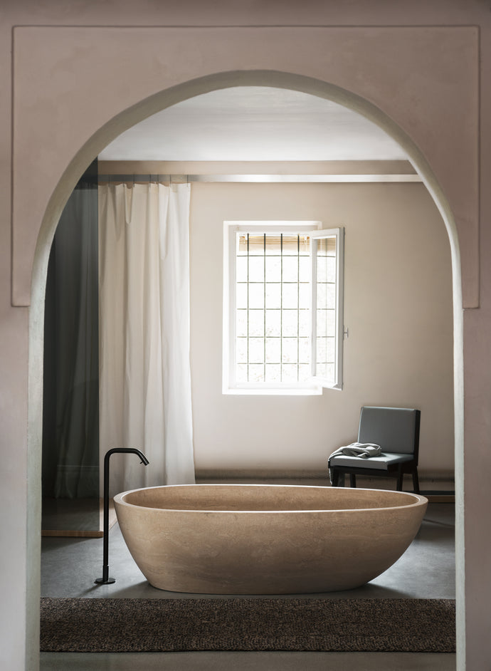 The bathroom design incorporates a selection of unique, handmade tiles from leading Italian design brands. The diverse range includes both ceramic and natural stone, suitable for bathrooms, swimming pools, kitchens, living rooms, and bedrooms. From large tile slabs to decorative mosaics or tiles with a 3D relief, where the interplay of shadow and light plays a significant role. Each tile is a work of art in itself and a jewel for any living space.
