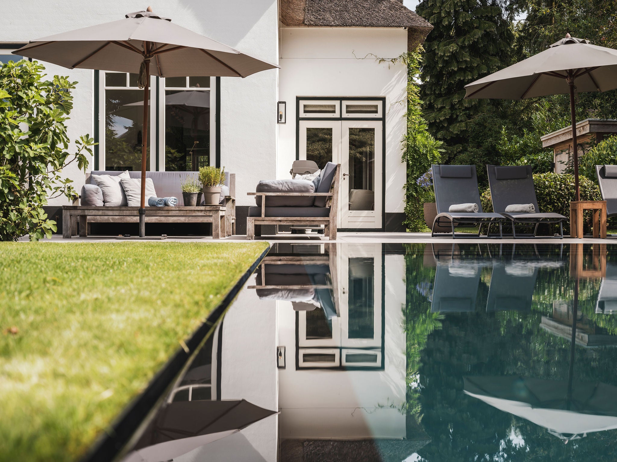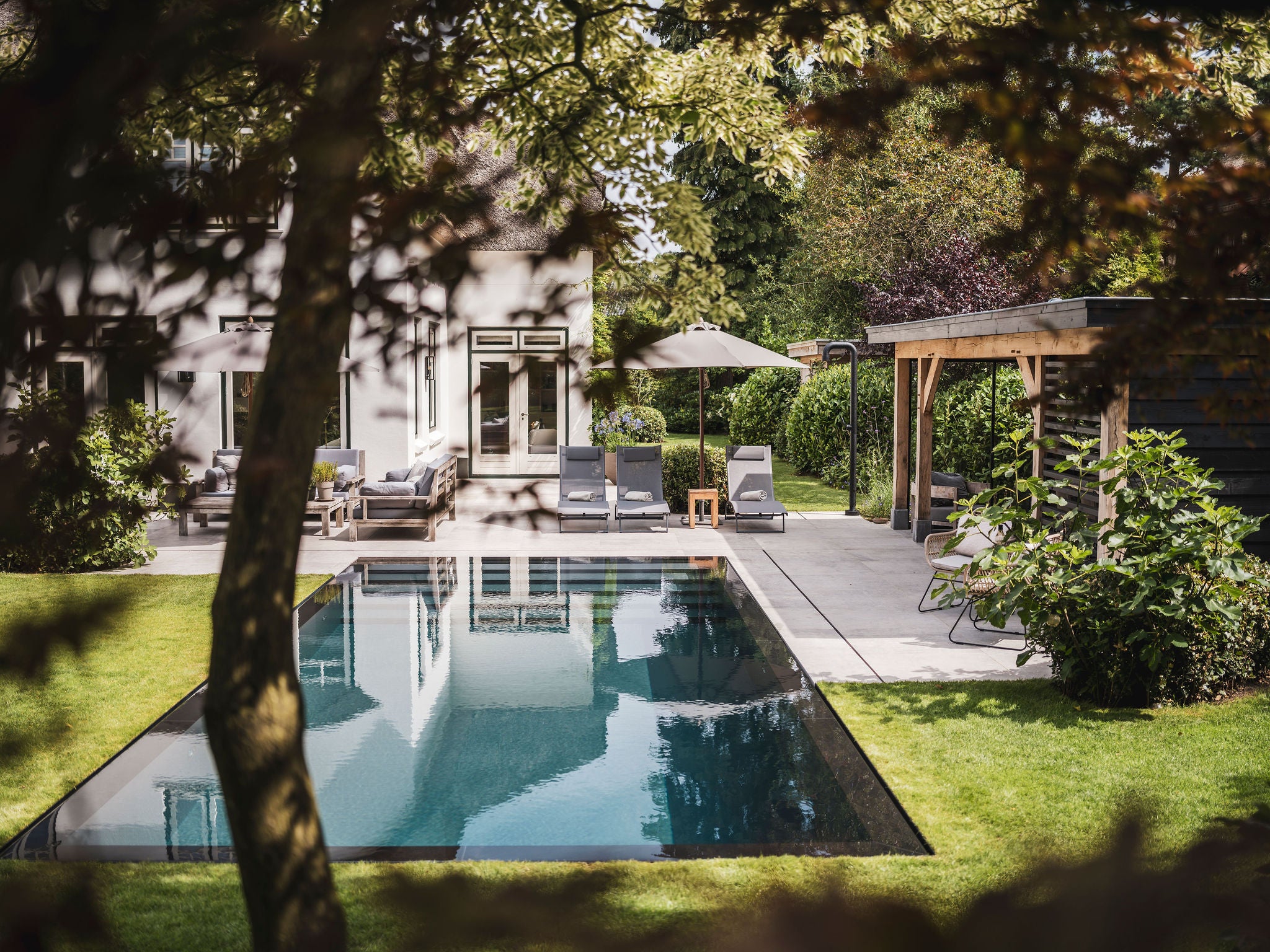 Pool Builders heeft nauw samengewerkt met de bewoners om een zwembad te creëren dat volledig aansluit bij hun wensen en de uitstraling van de tuin. Het resultaat? Een harmonieus samenspel tussen architectuur, natuur en ontspanning.