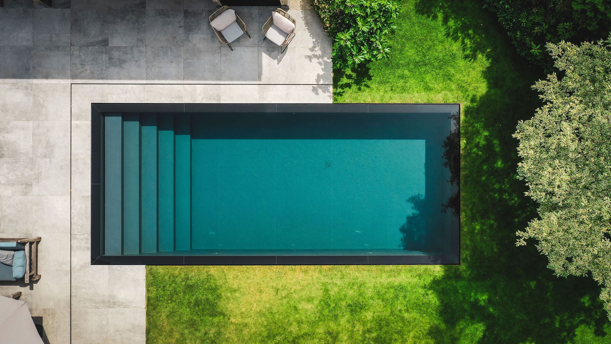 Dankzij een geavanceerd waterbehandelingssysteem geniet de eigenaar zorgeloos en veilig van het zwembad. Pool Builders installeert hoogwaardige filtratie- en desinfectiesystemen die zorgen voor water van drinkwaterkwaliteit – duurzaam, kristalhelder en volledig vrij van de typische chloorgeur. Zo biedt het zwembad niet alleen visuele perfectie, maar ook een gezonde en aangename zwemervaring.