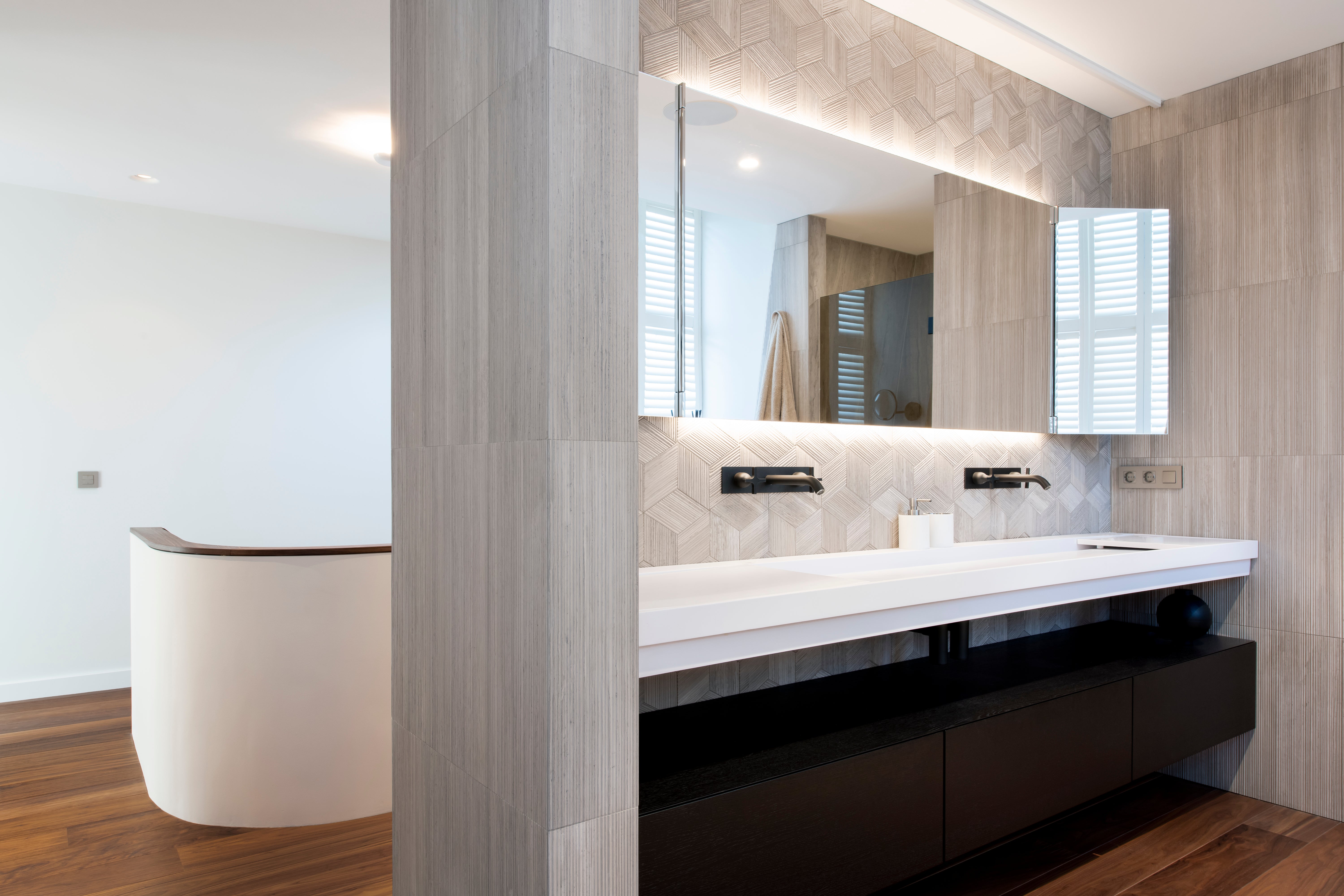 In een sfeervol appartement in Amsterdam heeft SJARTEC een stijlvolle en moderne en suite badkamer en toilet gerealiseerd, waarbij luxe en functionaliteit perfect samengaan.
