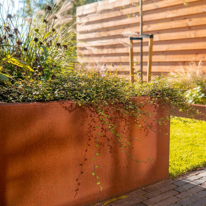 Cortenstaal plantenbakken zijn niet alleen functioneel, maar voegen ook rustieke schoonheid toe aan uw tuin. Met hun prachtige roestbruine kleur en natuurlijke uitstraling vormen ze een stijlvolle aanvulling op elke buitenruimte. Het unieke aan cortenstaal is dat het zeer weerbestendig is en een natuurlijke roestlaag vormt die het materiaal beschermt tegen verdere corrosie. Dit maakt cortenstaal uiterst duurzaam en geschikt voor langdurig gebruik in verschillende weersomstandigheden. Bovendien is cortenstaal een sterk materiaal dat bestand is tegen buigen en breken, waardoor het perfect is voor het vervaardigen van stevige plantenbakken. Als een bonus zijn de bloembakken van cortenstaal ook 100% recyclebaar, waardoor het een milieuvriendelijke keuze is. Deze plantenbakken zijn niet alleen prachtig om te zien, maar ook onderhoudsvriendelijk en licht in gewicht, waardoor ze gemakkelijk te verplaatsen zijn naar de gewenste locatie in uw tuin. Met cortenstaal plantenbakken kunt u genieten van de schoonheid van de natuurlijke roest patina terwijl u tegelijkertijd een tijdloos en elegant element aan uw tuin toevoegt.