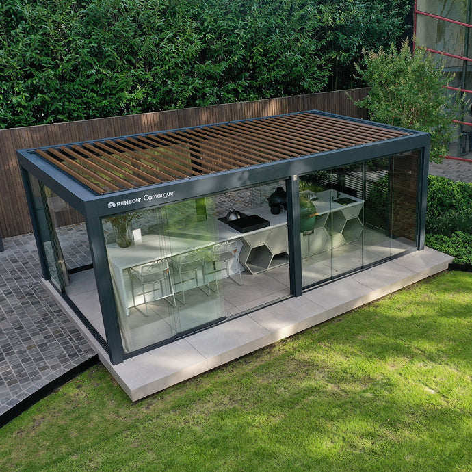 Bij Villa Arte zijn twee Renson overkappingen geplaatst door Ambiance Van der Wal. Een Renson Camargue over onze exclusieve HIVE buitenkeuken. De prachtige Renson Amani is geplaatst achterin onze tuin op ons zwevende terras. Deze stijlvolle toevoegingen zorgen voor comfortabele buitenkamers in onze mooie tuin – beschut en elegant in elk seizoen.
