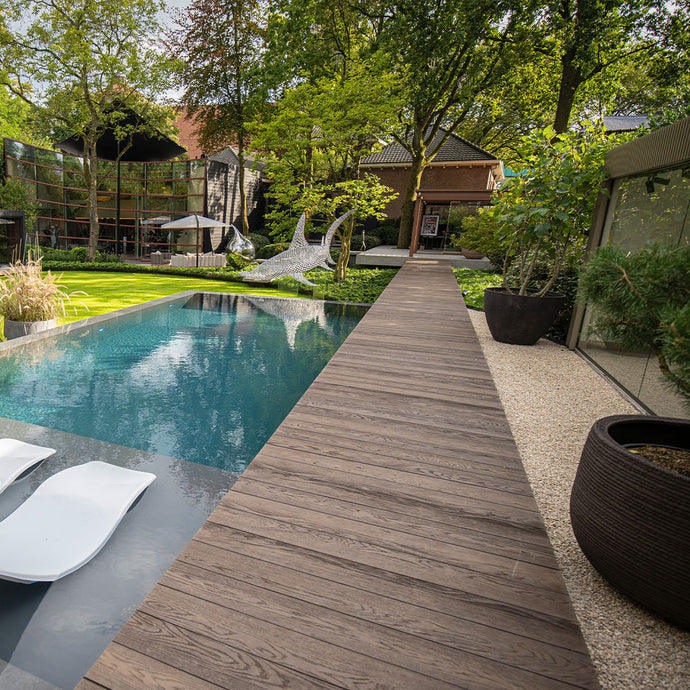 Dankzij onze samenwerking nemen wij deze materialen direct mee in onze exclusieve tuinontwerpen. Van zwevend terras tot robuust tuinpad of elegante brug: alles wordt afgestemd op het totaalconcept van uw buitenruimte. Uiteraard zijn de materialen ook los te bestellen – mocht u al een ontwerp of specifieke toepassing voor ogen hebben.