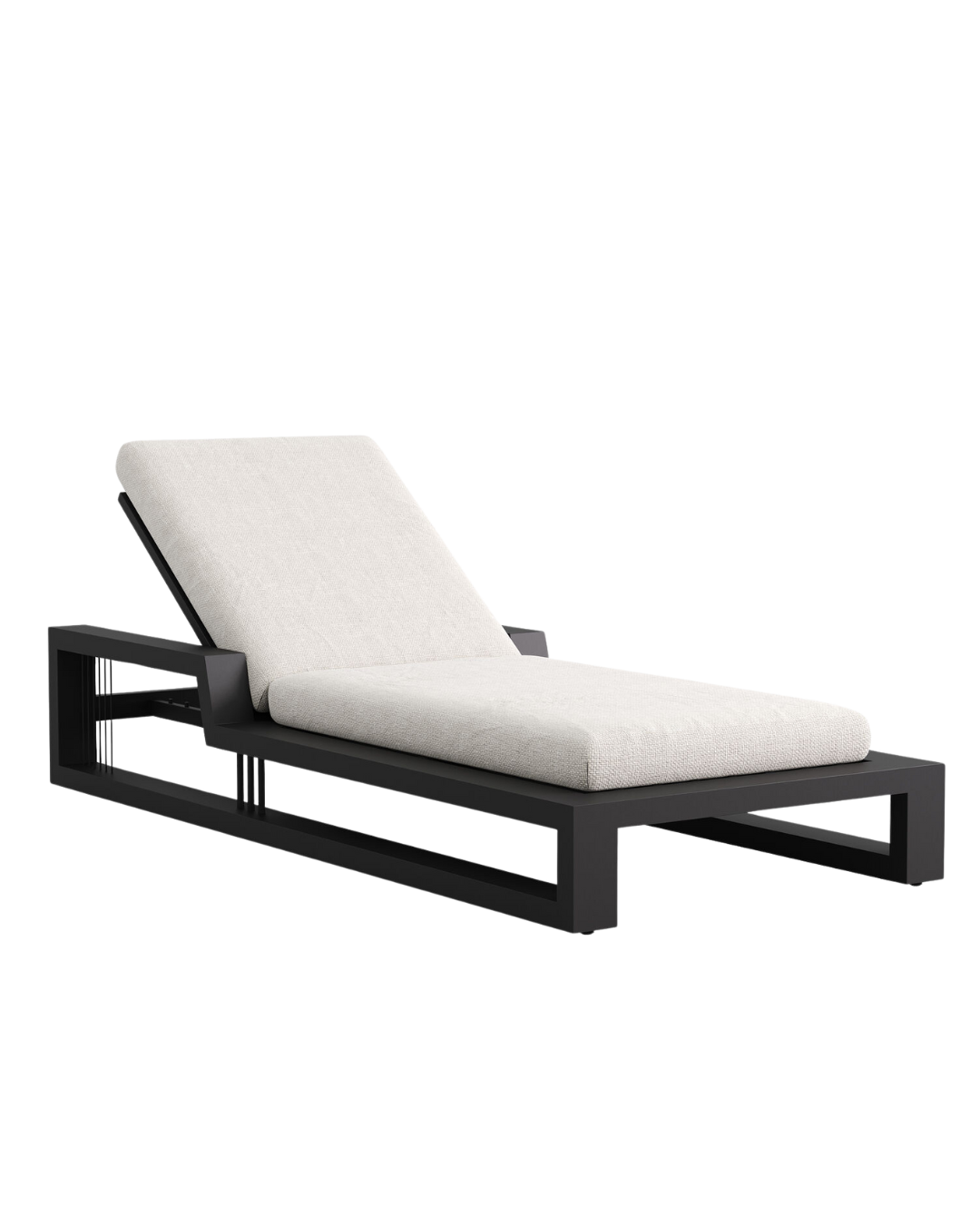 Maak de Ribbon serie van Bob Manders compleet met een lounger, die net als de modules van de bank een all-weather kussen in een natuurlijke tint bevat. Dit kussen contrasteert prachtig met het teakhout en het donkere aluminium. Het frame van de lounger is antracietgrijs en gemaakt van aluminium, met strakke lijnen die aan de zijkanten speels worden onderbroken door donkere, smalle touwen. Van alle kanten bekeken is de Ribbon een prachtig ligbed om naar te kijken.