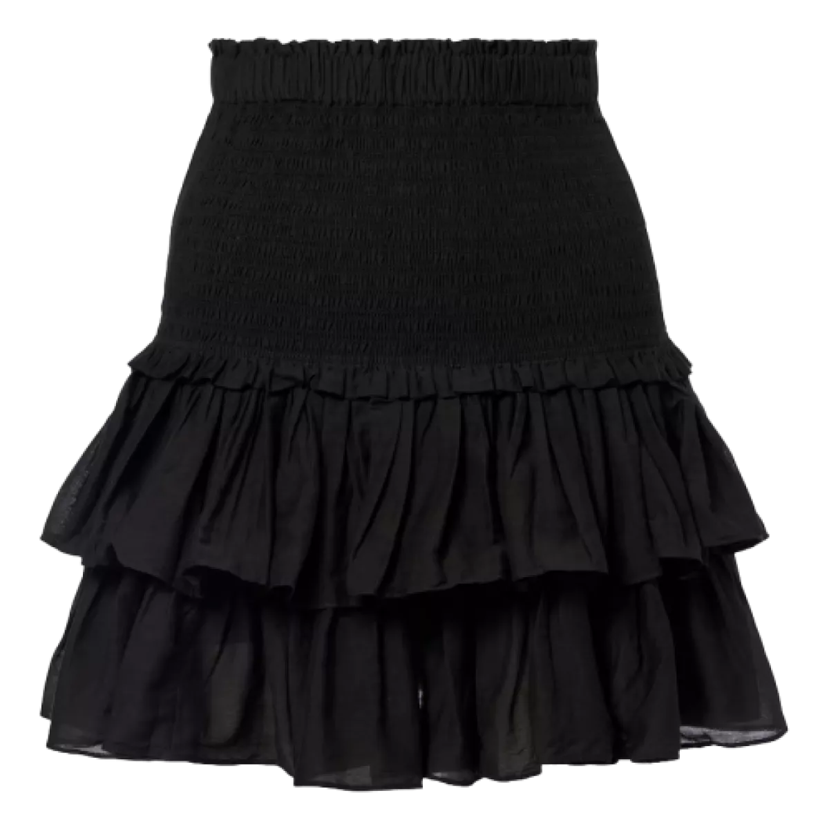 De Naomi Skirt – Zwart is moeiteloos te combineren met blouses, knitwear of opvallende tops, en is een tijdloze toevoeging aan elke garderobe.
