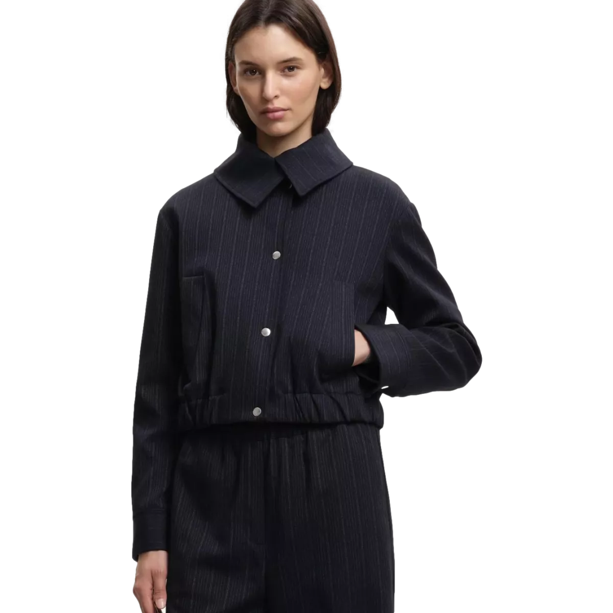 De Margaux Lonnberg Anja Jas in donkerblauw met strepen is een stijlvolle outerwear essential die moeiteloos comfort en fashion combineert. Het gestreepte design geeft de jas een moderne en levendige uitstraling, terwijl de hoogwaardige materialen zorgen voor warmte en duurzaamheid.