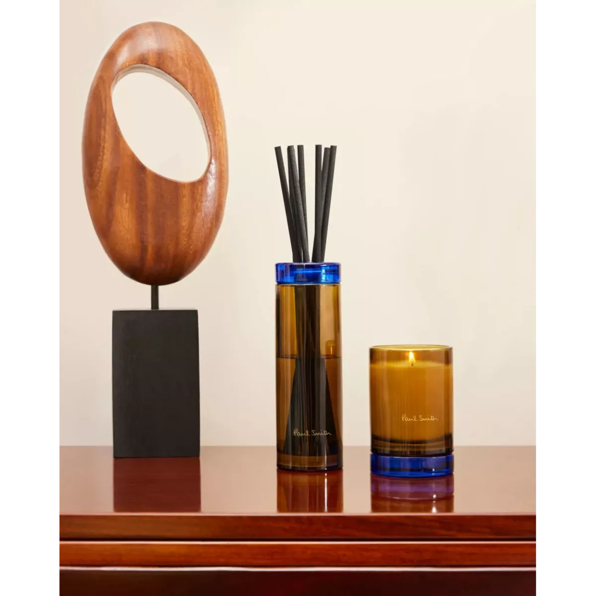 Een rokerige, winterse en heerlijk knusse geur, onze nieuwe Storyteller-kaarsen en diffusers – de nieuwste toevoegingen aan Paul Smith's home fragrance collectie – roepen enkele zeer bijzondere herinneringen op voor Paul. Met de hand gegoten en gemengd met premium ingrediënten, is deze kaars geformuleerd om een uitzonderlijke geurverspreiding te garanderen. De was is gehuisvest in een getint glazen houder, compleet met een contrasterend deksel dat ook als onderzetter dient, een uiting van Pauls voorliefde voor kleur en de eindeloze combinaties daarvan. Na het opbranden, waarom geeft u de houder geen nieuw leven als pennen- of bloempot? Of misschien om kunstbenodigdheden, toiletartikelen, bloemen of andere spulletjes in te bewaren?