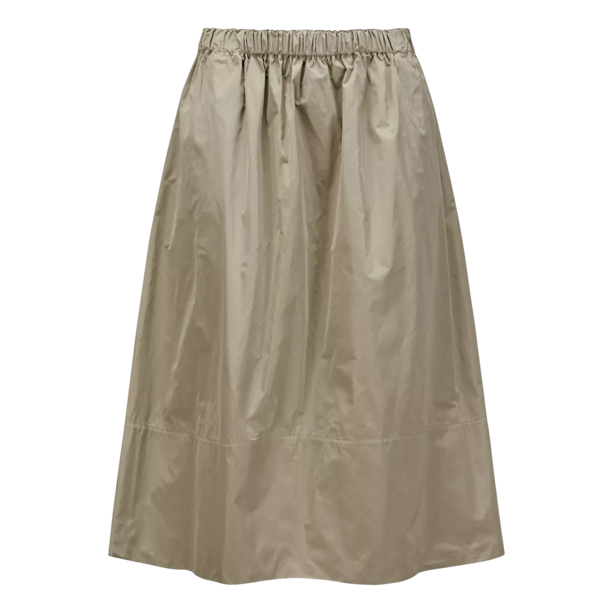 This women's skirt from Fabiana Filippi in reed effortlessly blends elegance with a casual touch. The iridescent fabric gives it a sophisticated look, while the elasticated waistband and two functional pockets add a relaxed feel, making it the perfect everyday piece. The flared fit offers both comfort and a flattering silhouette, making it ideal for both casual and more polished occasions.