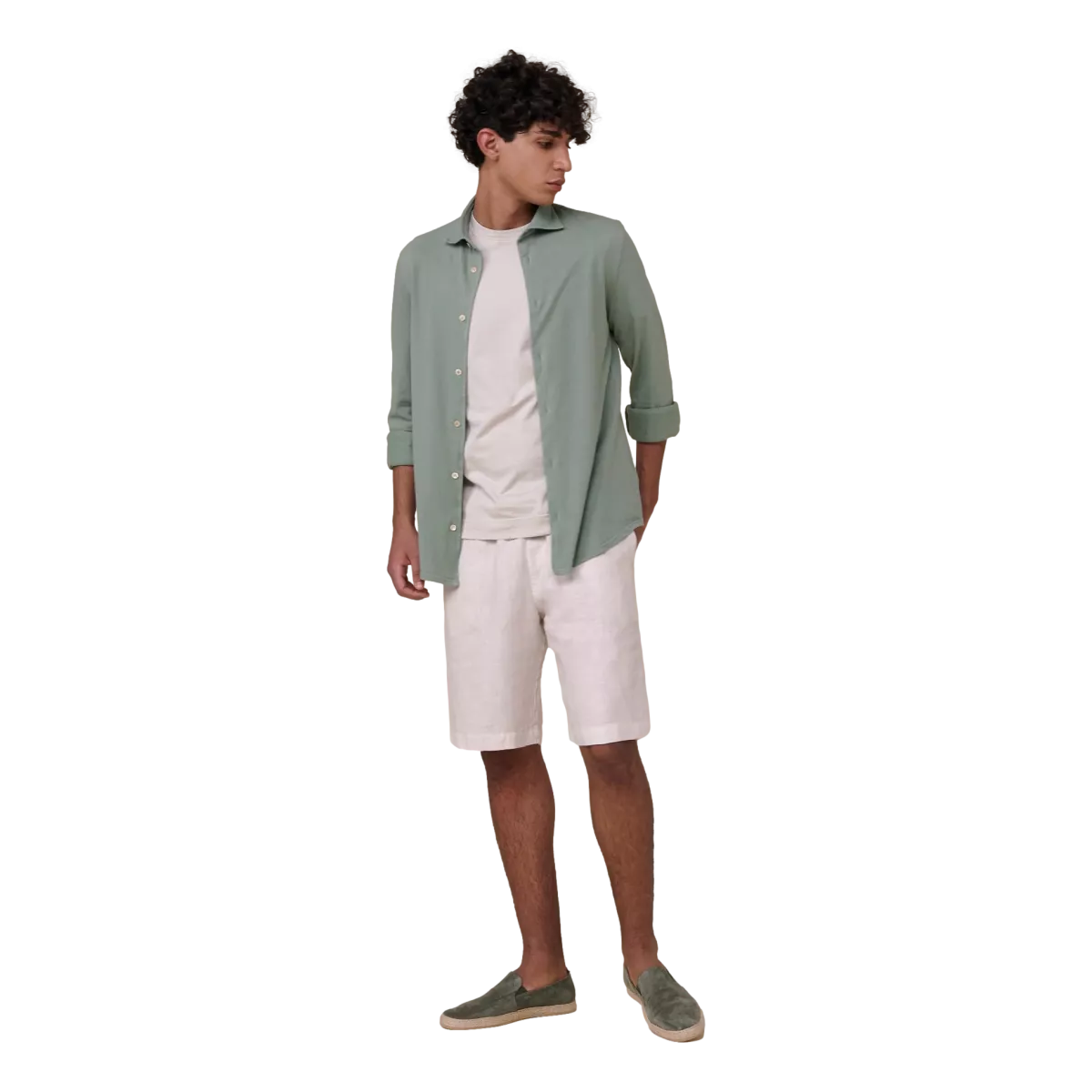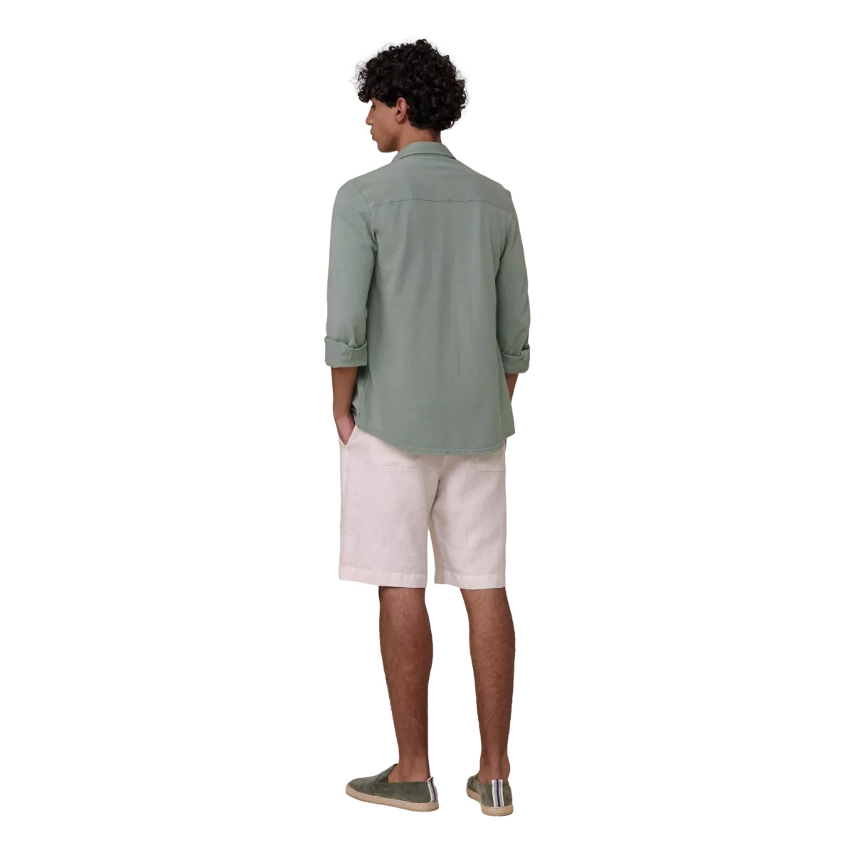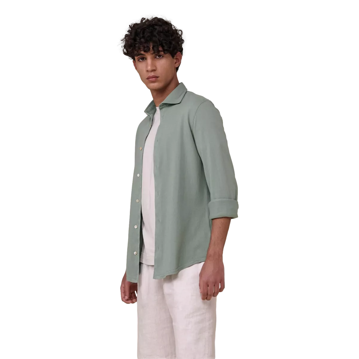 Iconic shirt crafted from 100% organic cotton. It undergoes a garment-dyeing process that gives it a vintage-inspired aesthetic with a unique delavé effect. Mother of pearl buttons, along with the rounded bottom, add a touch of elegance and refinement to this creation.