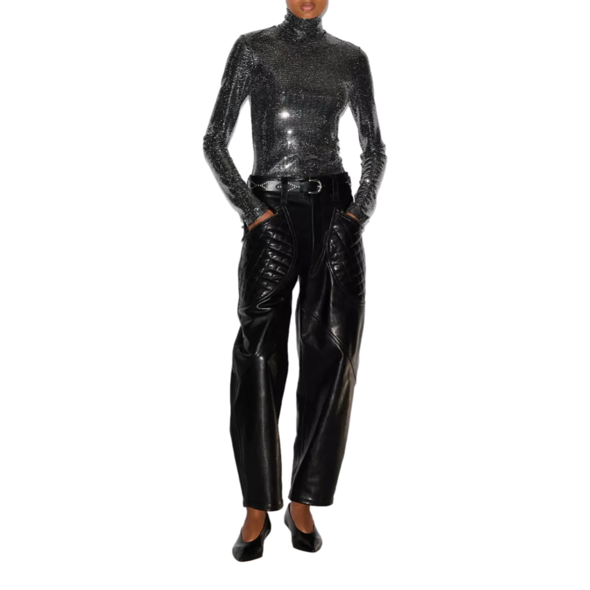 This sleek roll neck top from Isabel Marant is crafted from shiny jersey, offering a modern and sophisticated look. Designed with long sleeves and a fitted cut, it hugs the body for a flattering silhouette. The hidden zipper at the back ensures a smooth, seamless finish. Perfect for elevating both casual and evening outfits with a touch of understated elegance.