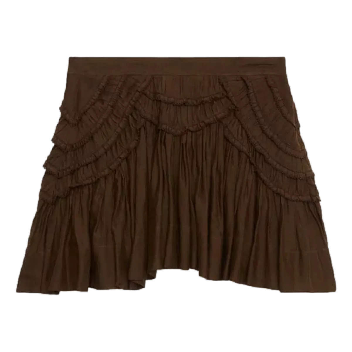 De Ceola-rok straalt luchtige elegantie uit. Gemaakt van katoenen voile met fijne ruches en geplooide details die mooi meebewegen. De aangesloten taille en subtiele flair geven een vrouwelijk, zomers silhouet — stijlvol met sandalen of laarzen.