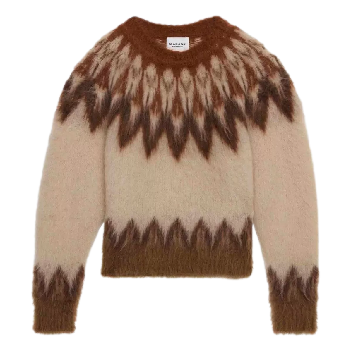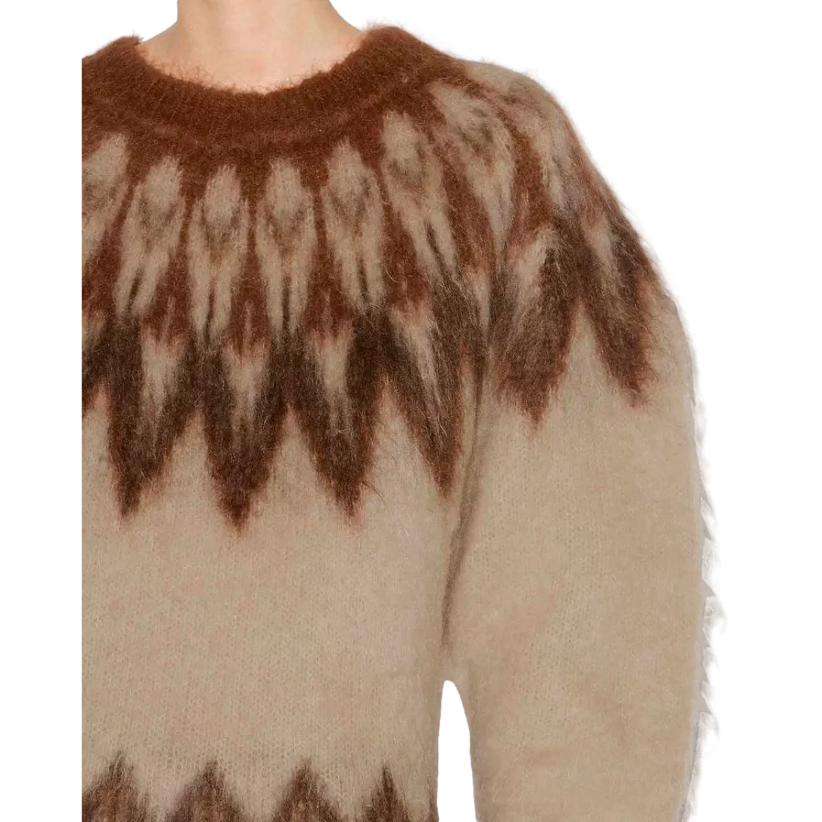 De Natania-trui brengt traditioneel Fair-Isle-breisel naar een modern, relaxed silhouet. De mohair-blend voelt zacht en luchtig aan, terwijl het ronde model moeiteloos combineert met denim of rok. Warm, karaktervol en typisch Isabel Marant.