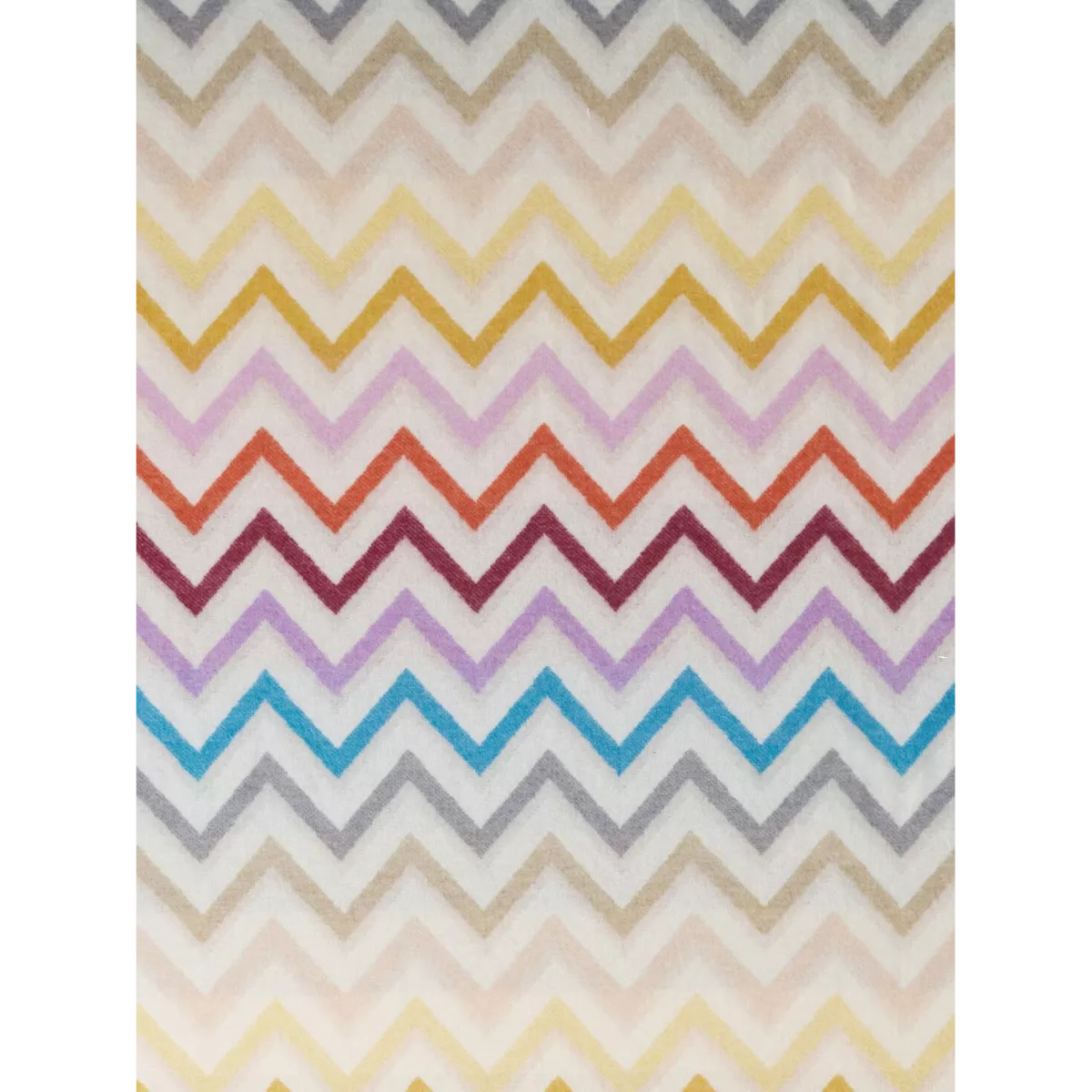 The Watamu plaid by Missoni, measuring 130x190 cm, is a perfect balance of comfort and design. Made from a wool blend, it showcases the brand's signature zigzag pattern, reinterpreted with a play of vibrant colors. Decorative fringes complete the look with a touch of refined dynamism, making it a sophisticated and cozy home accessory.